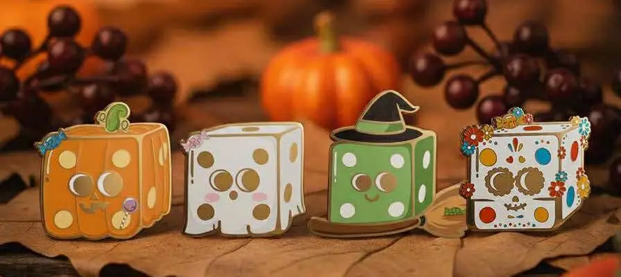 Découvre notre toute première collection Case Dé-Part : 4 adorables pin's dés à adopter. Ces petits filous se sont aussi déguisés pour Noël dernier au travers de la collection Dé-Cembre, et quelque chose me dit qu'ils vont remettre ça à Halloween... 👻