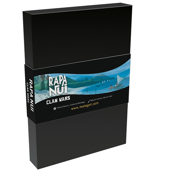 - La Guerre des clans : l’harmonie entre les clans Rapa Nui ne dure pas longtemps, et la compétition pour ériger des Moai a dégénéré en guerre ! Pour des parties plus féroces, vous pouvez désormais placer vos Transporteurs sur des espaces déjà occupés par des adversaires (? ça va être la bagarre !). Lorsque vous transportez Moai ou Pukao, vous pouvez choisir quel transporteur fait le travail. Vous pouvez également utiliser les tuiles Détruire, Menacer, Profaner et Garder pour plus tard, dans une guerre qui allongera considérablement le jeu et renforcera vraiment l’importance de l’ordre des tours. Attention aux amitiés…