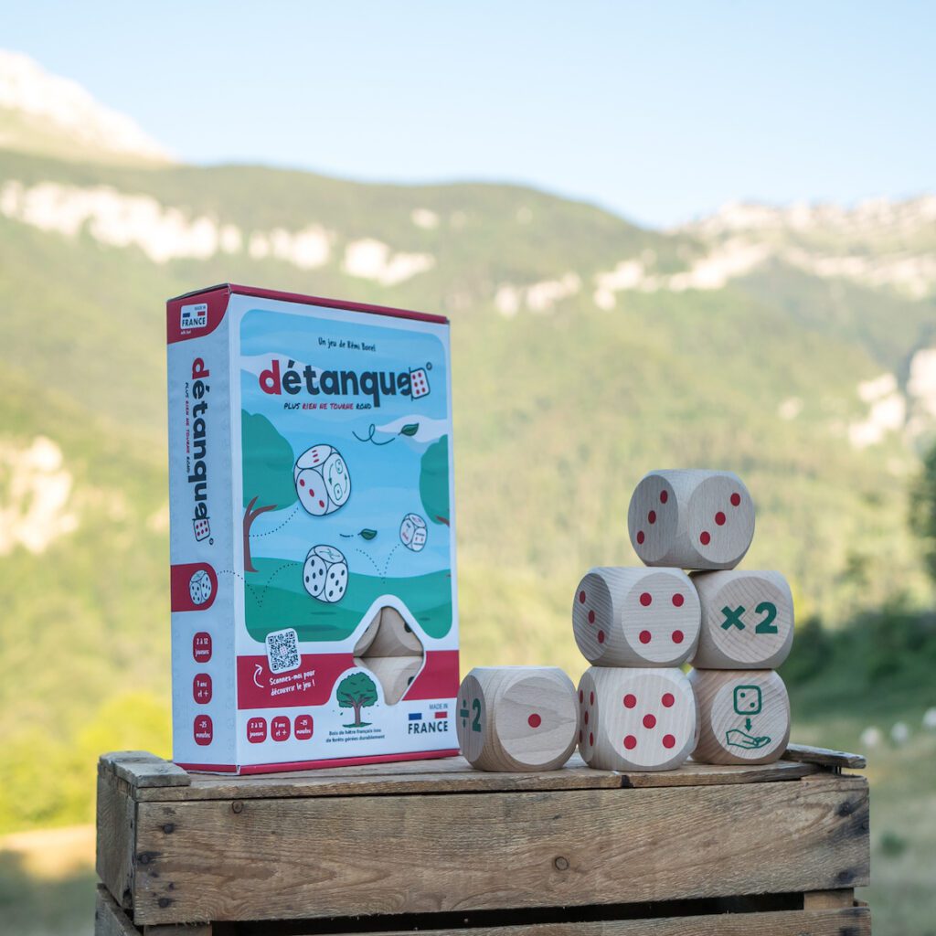 La traditionnelle pétanque est trop technique pour vous ? Le Molkky commence à vous lasser ? Alors adoptez la détanque pour animer votre été. C’est simple comme bonjour : lancez vos gros dés en bois à la place des boules de pétanque et tirez parti des Super Pouvoirs ! Rebondissements assurés pour ce jeu autant addictif que l’apéro qui va avec !