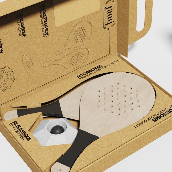 Sport populaire des années 1950, le jokari est de retour ! Avec 2 raquettes, un socle en béton recyclé, une balle reliée par un élastique, le set imaginé par Jauq se transporte facilement dans son sac pour jouer partout, seul ou à plusieurs. Un jeu qui rappelle la réplique de Jean Dujardin dans OSS 117 : « T’es mauvais Jack ! »