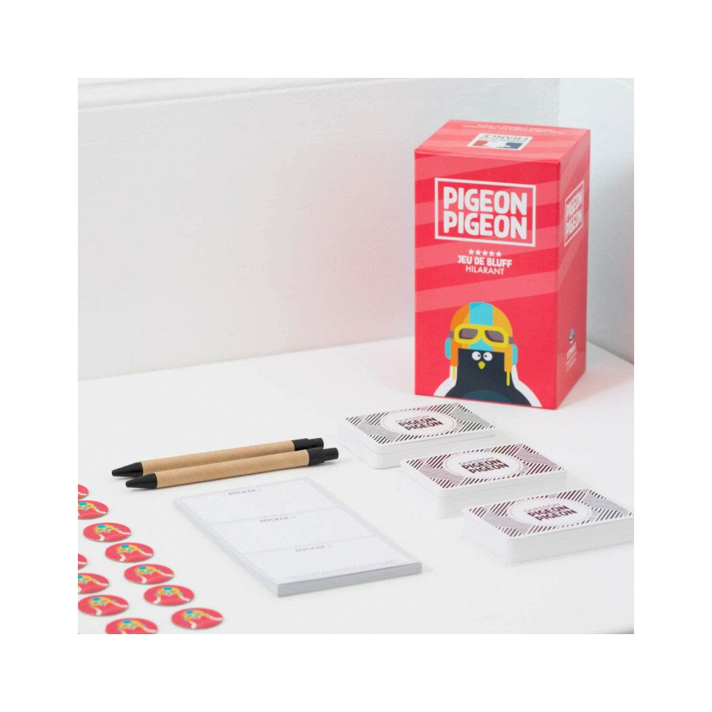Co-imaginé avec 150 joueurs et fabriqué en France, Pigeon Pigeon est un pur jeu d’ambiance qui débride l’imagination, l’humour et le sens du bluff des joueurs (2 à 10 joueurs).