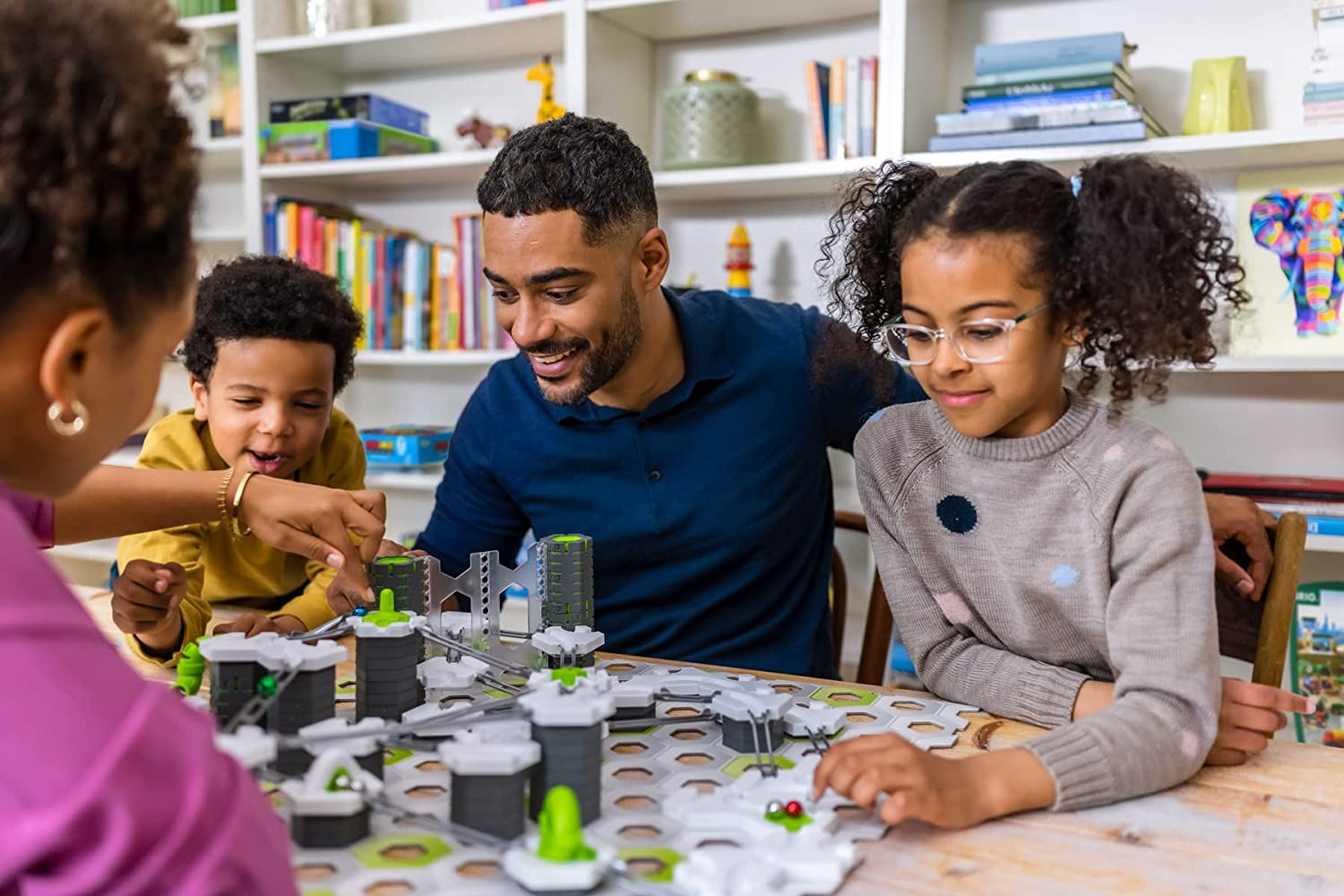 Au total, 62 pièces de construction GraviTrax sont à collecter dont 1 bille dorée, 4 éléments (un trampoline, un color swap et plus encore) ainsi que des pièces de construction comme des rails, blocs et une plaque en carton !
