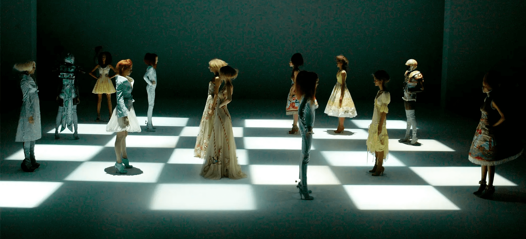 Un des défilés les plus marquants de sa carrière : la collection printemps-été 2005, où le Britannique Alexander McQueen avait décidé d’organiser avec ses mannequins un jeu d’échecs grandeur nature.