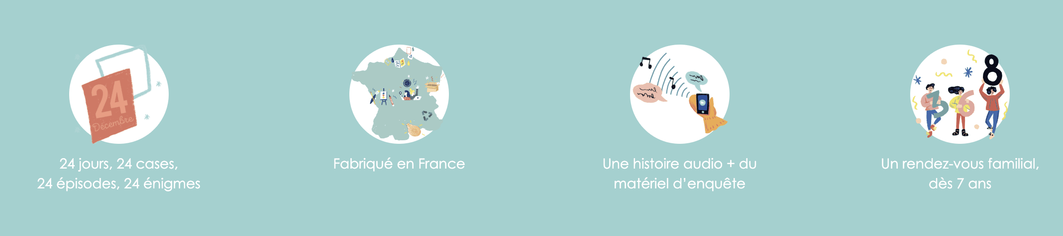 - 25 jours de surprises (mini-jeux, livrets de scénario, autocollants, etc) !