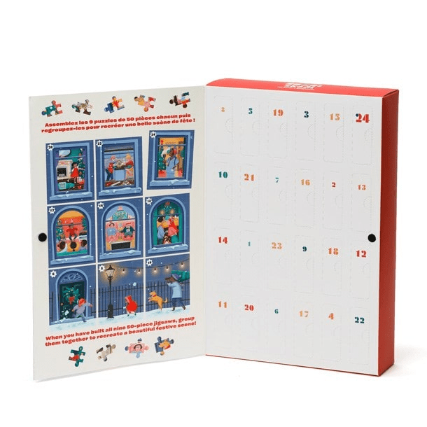 Derrière chacune des 24 fenêtres se cache un puzzle de 50 pièces. Assemblez-les chaque jour pour recréer cet ensemble festif.