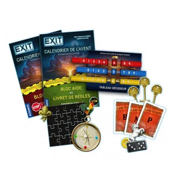 EXIT – Calendrier de l’Avent : A la Poursuite du Livre d’Or est un jeu qui reprend les sensations des escape games. Muni d’indices, de matériel et d’un décodeur, vous aurez pour mission de sortir du jeu le plus rapidement possible. Votre plateau est le calendrier de l’avent lui-même. Il est complété par le bloc Histoire.