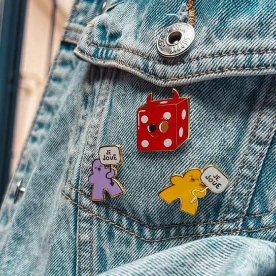 - Pin’s ludiques (meeples, dés, puzzle…)